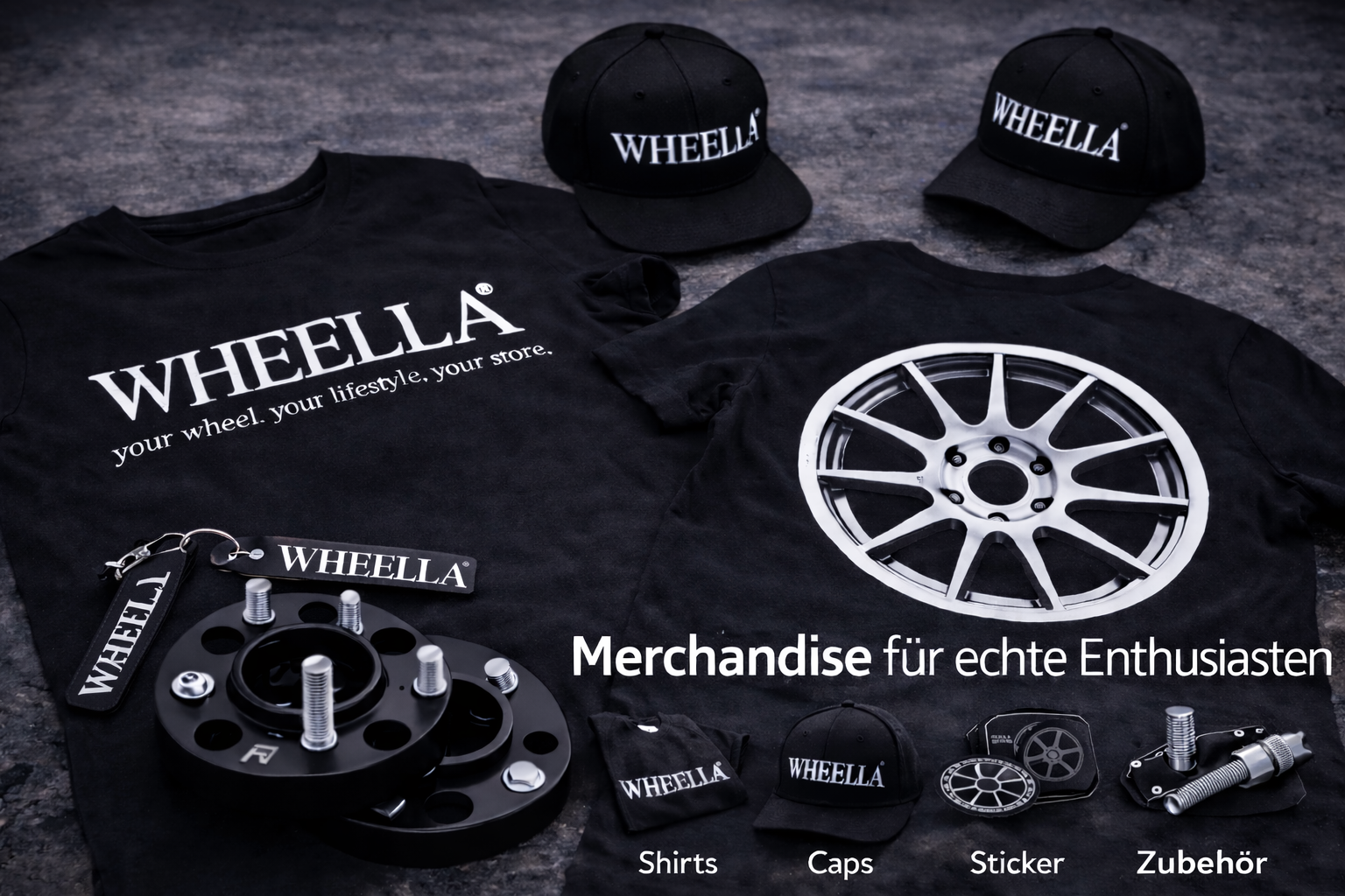 In unserer Merchandising-Kategorie findest du ausgewählte Lifestyle- und Brand-Produkte von WHEELLA. Ob Bekleidung, Accessoires oder Werbeartikel – unsere Produkte verbinden Design, Qualität und Markenidentität.